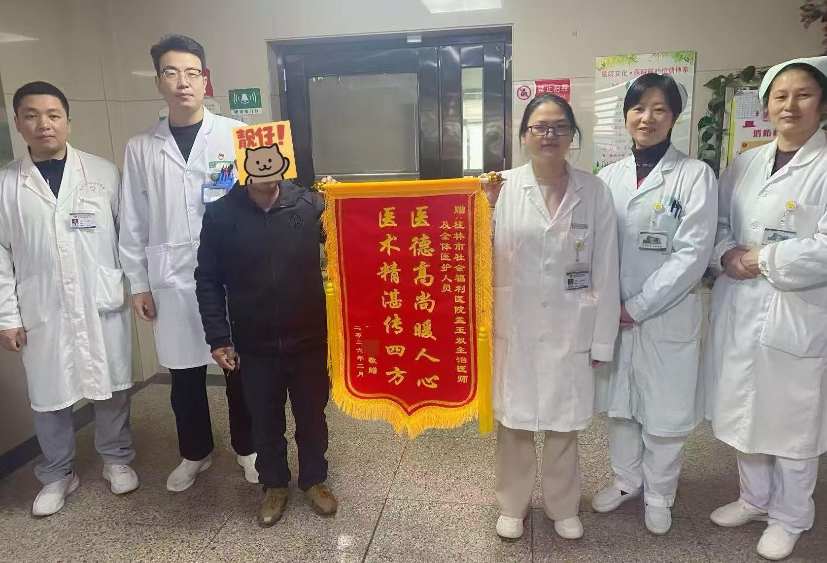 近日,桂林市社会福利医院三病区党支部收到了一份沉甸甸的敬意——康复患者黎某怀着满心感激,将一面镌刻着医患深情的锦旗送到了支部党员与医护人员手中。这面锦旗的背后,是一段跨越十七载的携手抗病佳话,更是医院以党建为根、以患者为中心,用专业与温度践行医者使命的生动写照。
