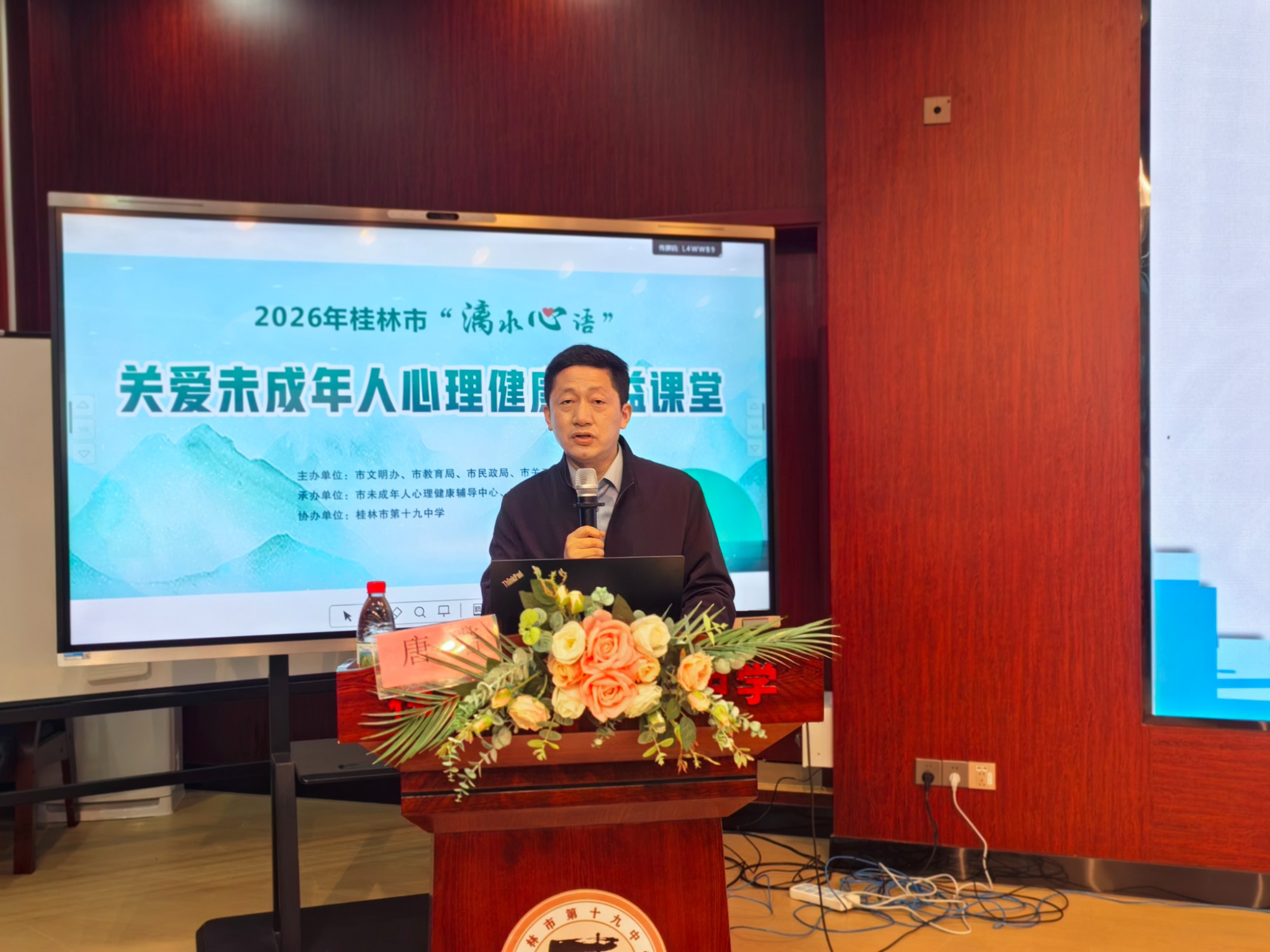 4月22日下午,由桂林市文明办、市教育局、市民政局、市关心下一代工作委员会联合主办,桂林市未成年人心理健康辅导中心与桂林市社会福利医院共同承办的“漓水心语”关爱未成年人心理健康公益课堂(第二期),在桂林市第十九中学求知楼五楼报告厅顺利举办。